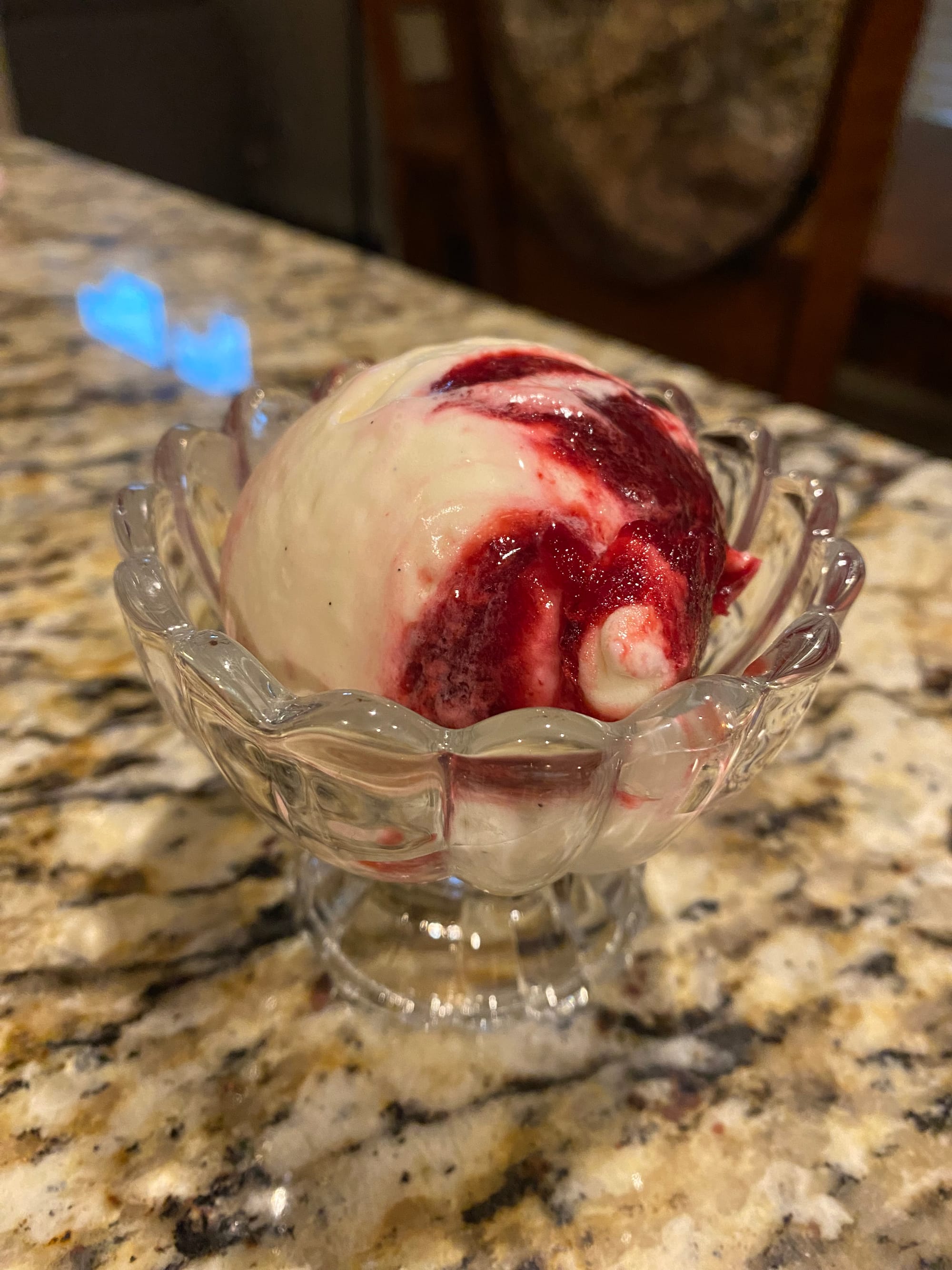 We did decide to make some ice cream for our rehearsal dinner. The flavors were kept simple: Vanilla, Chocolate, and Lemon Crème Fraîche. These paired well with the cobbler that Mel's dad made.
