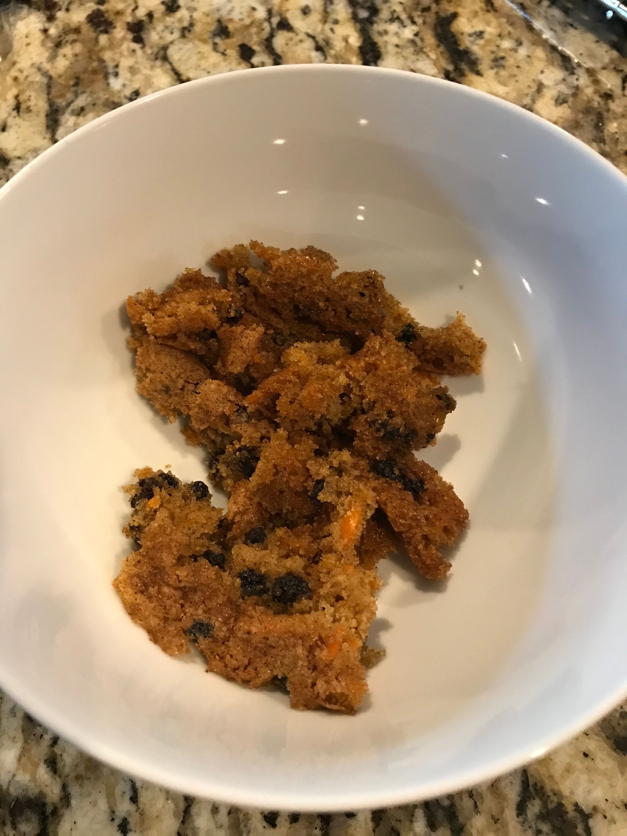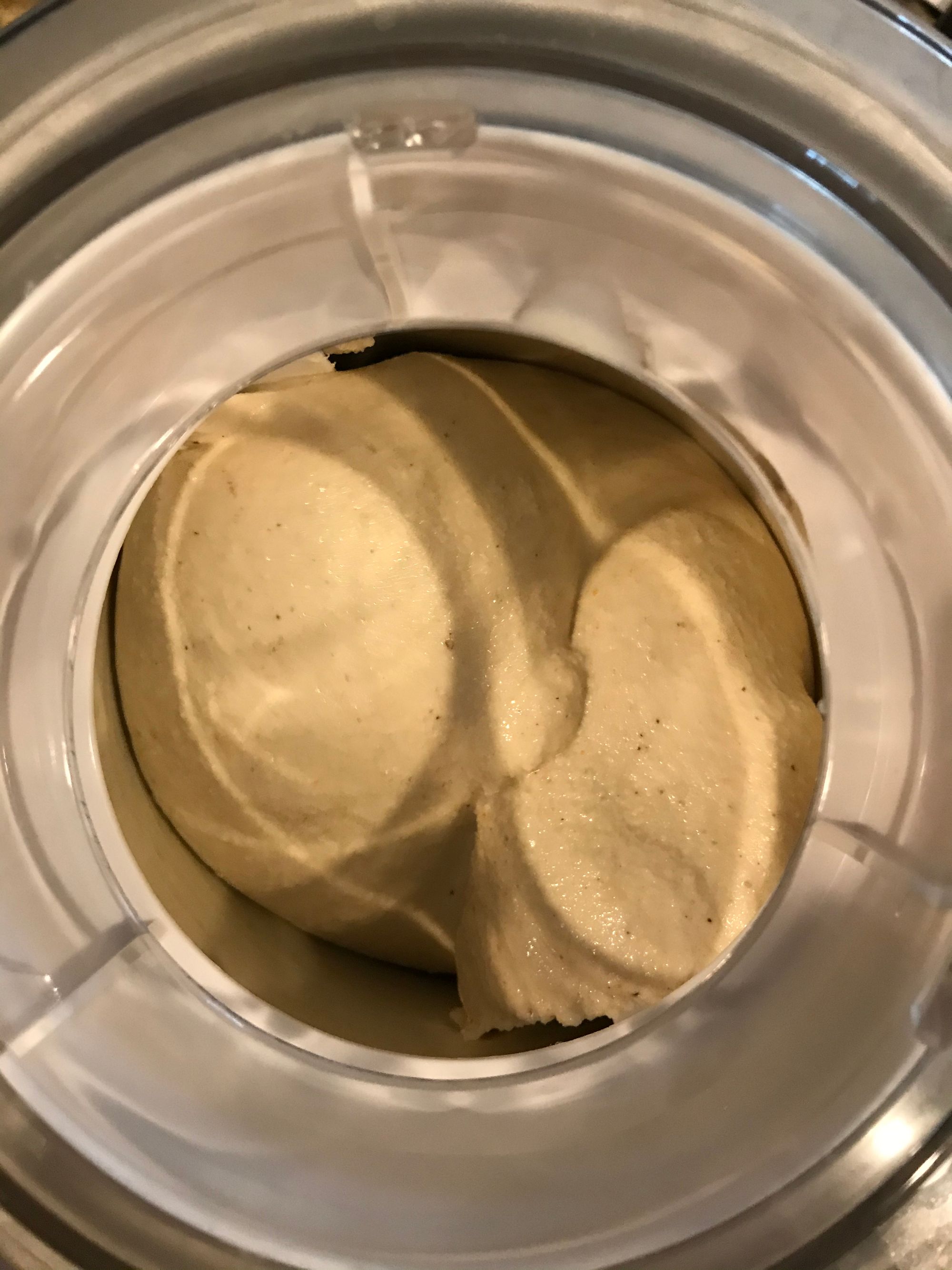 Actual carrot cake was blended into the hot base and the final result was strained to remove the little bits of currant that didn't fully blend. It smelled like carrot cake when the base went in for the overnight chill and the color was a nice shade of the cake. If I looked closely, I could see small flecks of carrot in the base. In the end, it does taste like carrot cake!