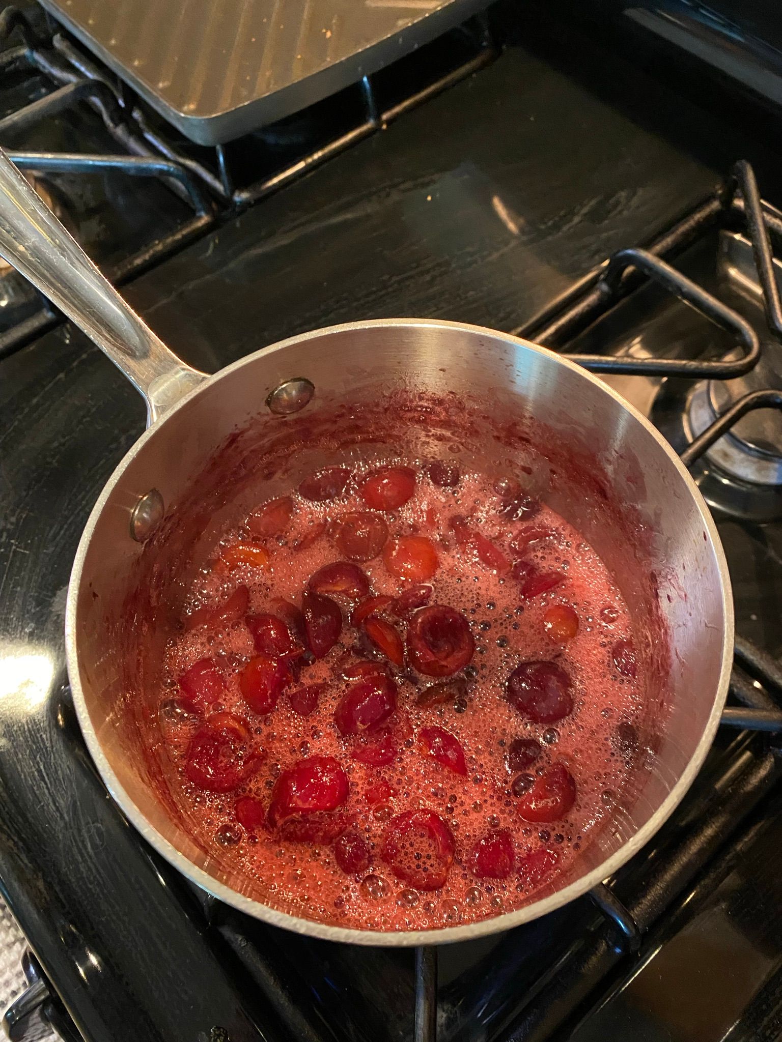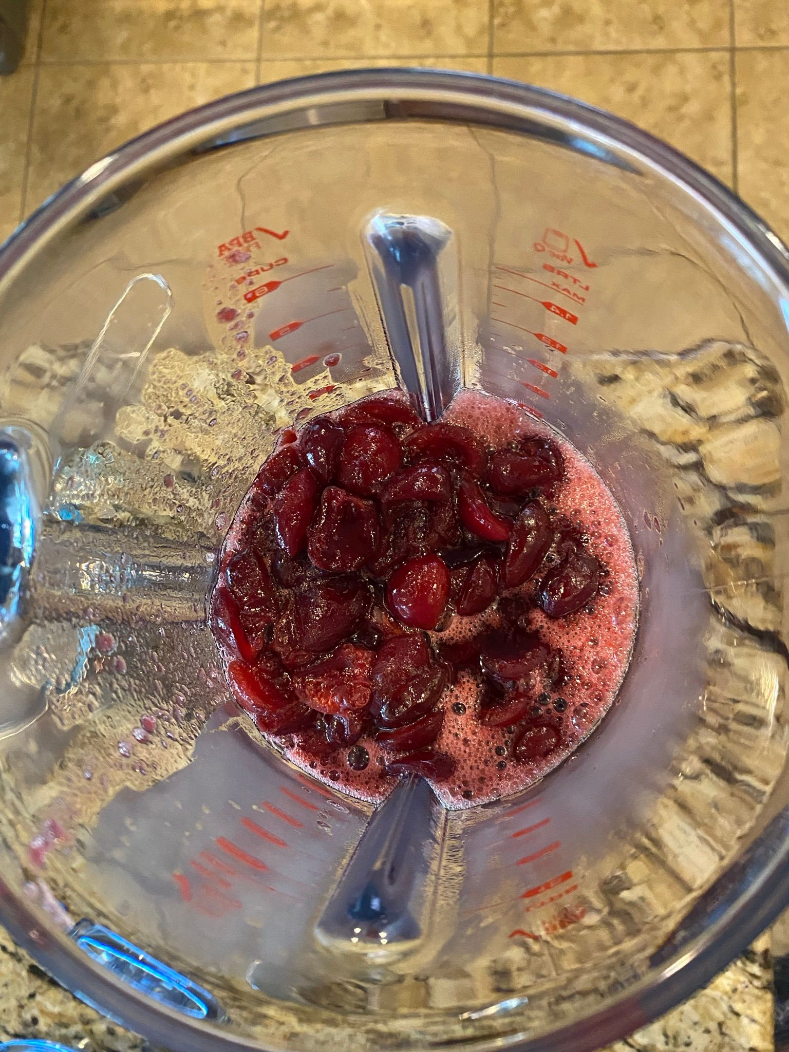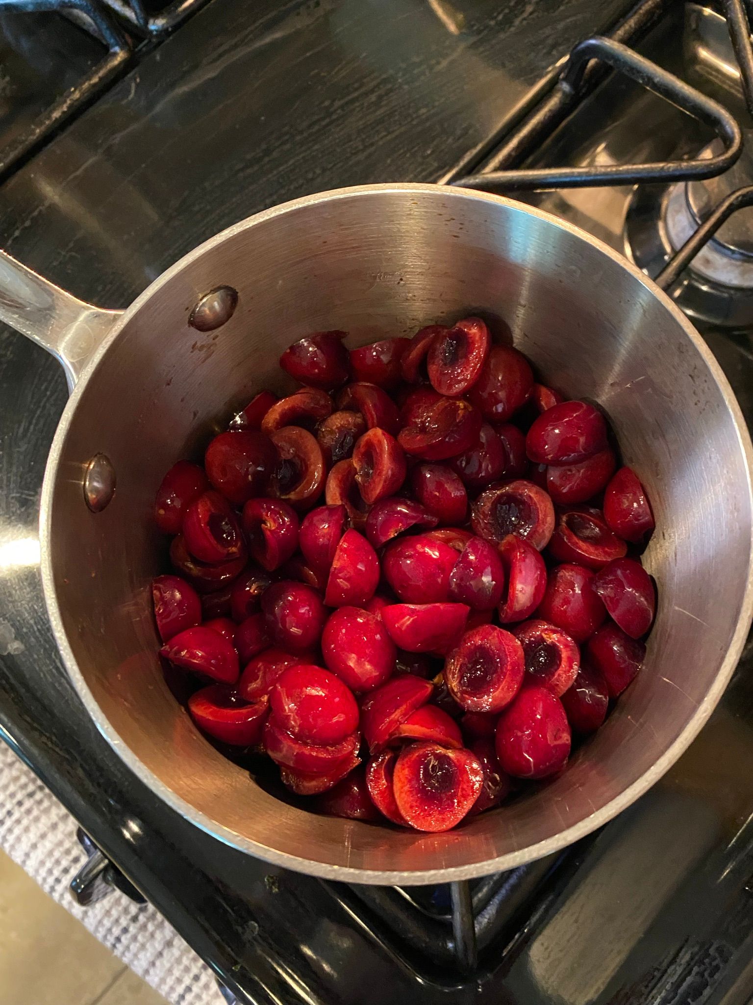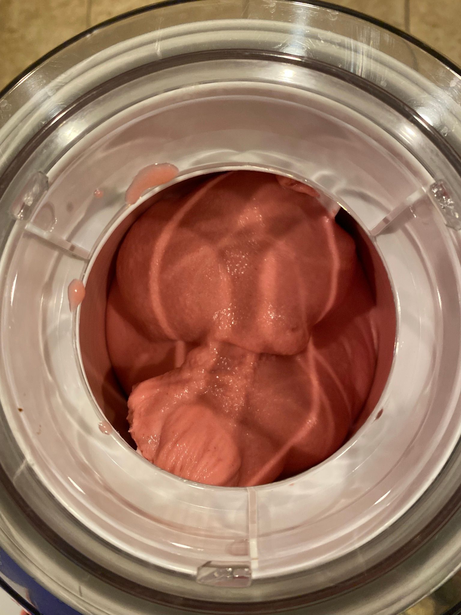 I used my standard sherbet recipe with cherry puree. Since I do not have a cherry pitter, preparing the puree took a little longer since I needed to cut around the pit and then pull it out. But on the plus side, I was effectively guaranteed a pit-free puree as it's quickly apparent if you miss a pit!