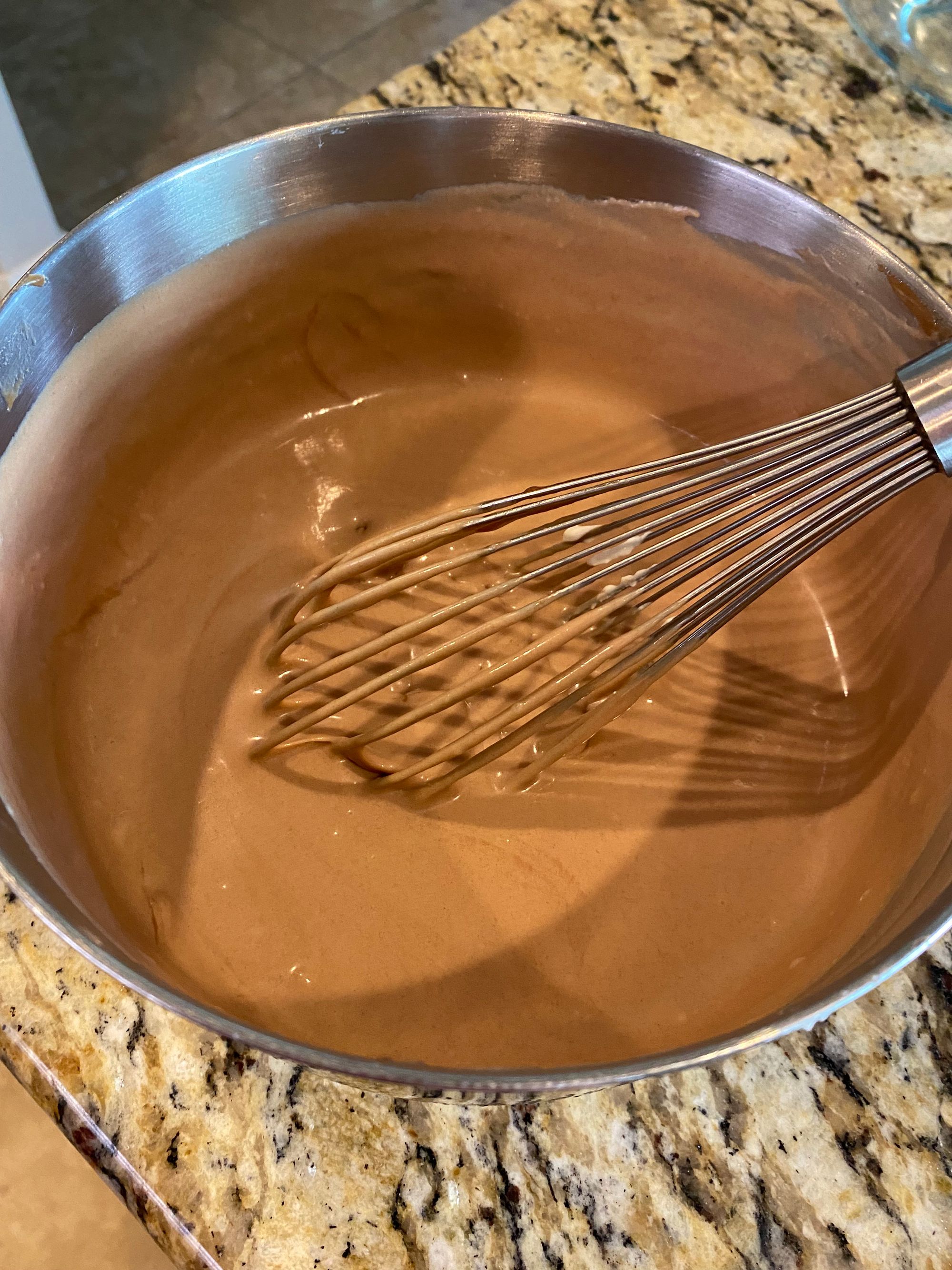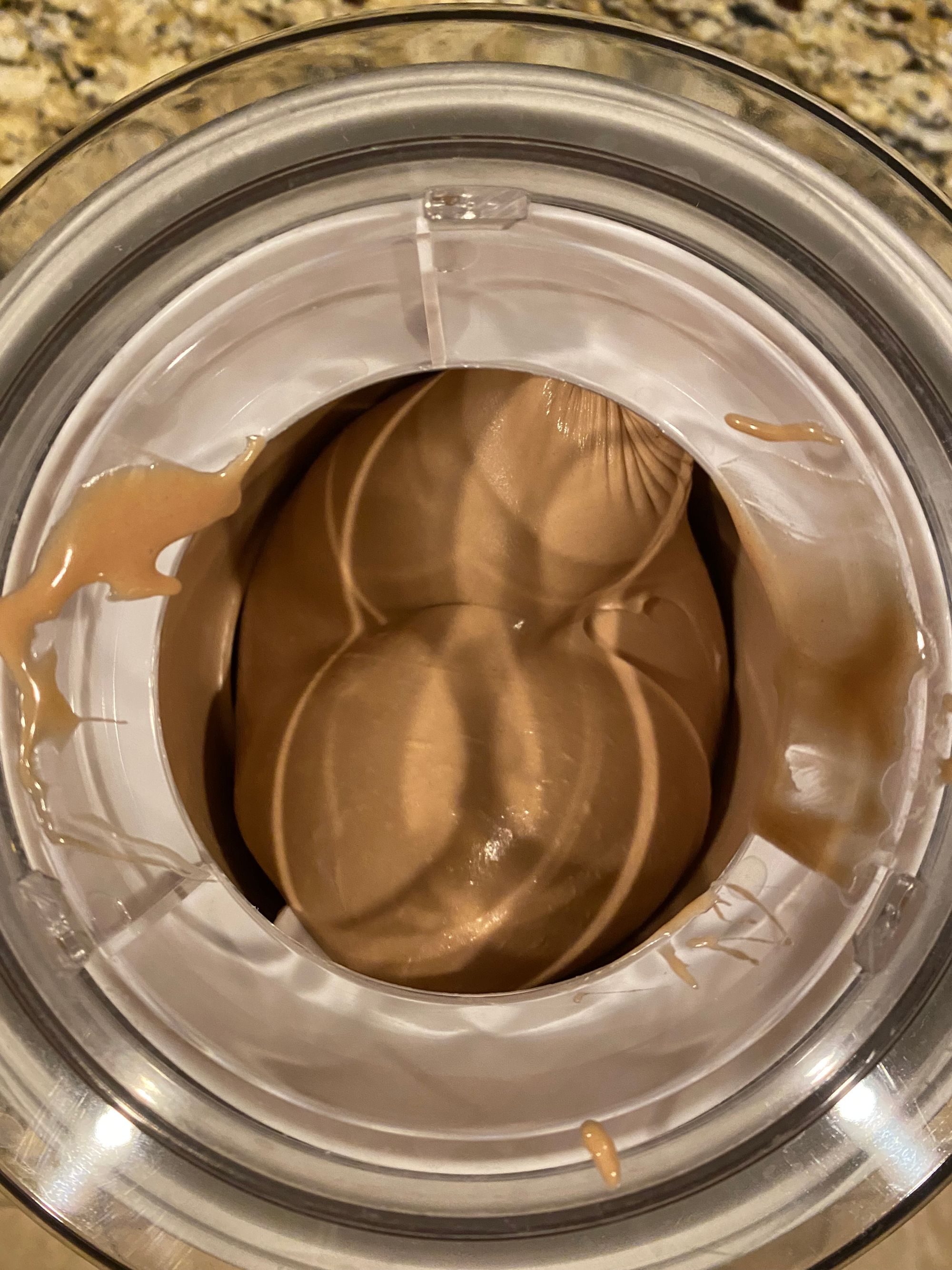 This may have been one of the quickest frozen treats I have put together. The dairy and sugars boiled quickly, and efficiently melted the milk chocolate. From there, the base was cooled and yogurt whisked in. The base was very thick, likely due to the tight matrix formed by the sugars and diary holding most of the free water tight. As a result, I had closer to 1 quart of frozen yogurt as compared to the 1.5 quarts that many of the recipes produce.