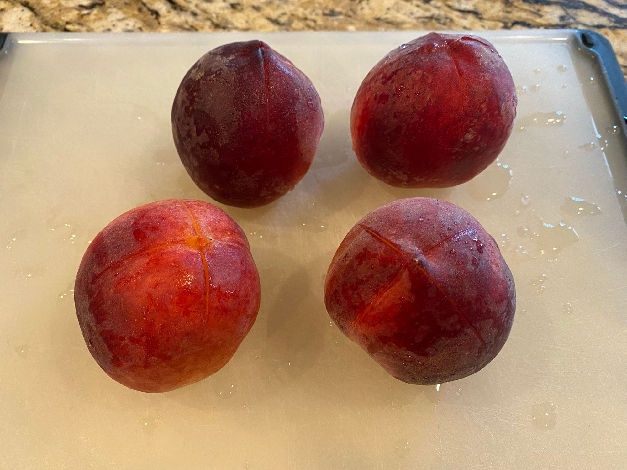 HEB had some white peaches on sale this week, so I decided to buy some to try making a peach sherbet. I've started seeing some of the Fredericksburg peach stands on the side of the road so the season is coming. I wanted to make sure to perfect the recipe first before purchasing some of the good peaches. With very little else to flavor the sherbet, the quality of peaches will make a big difference!