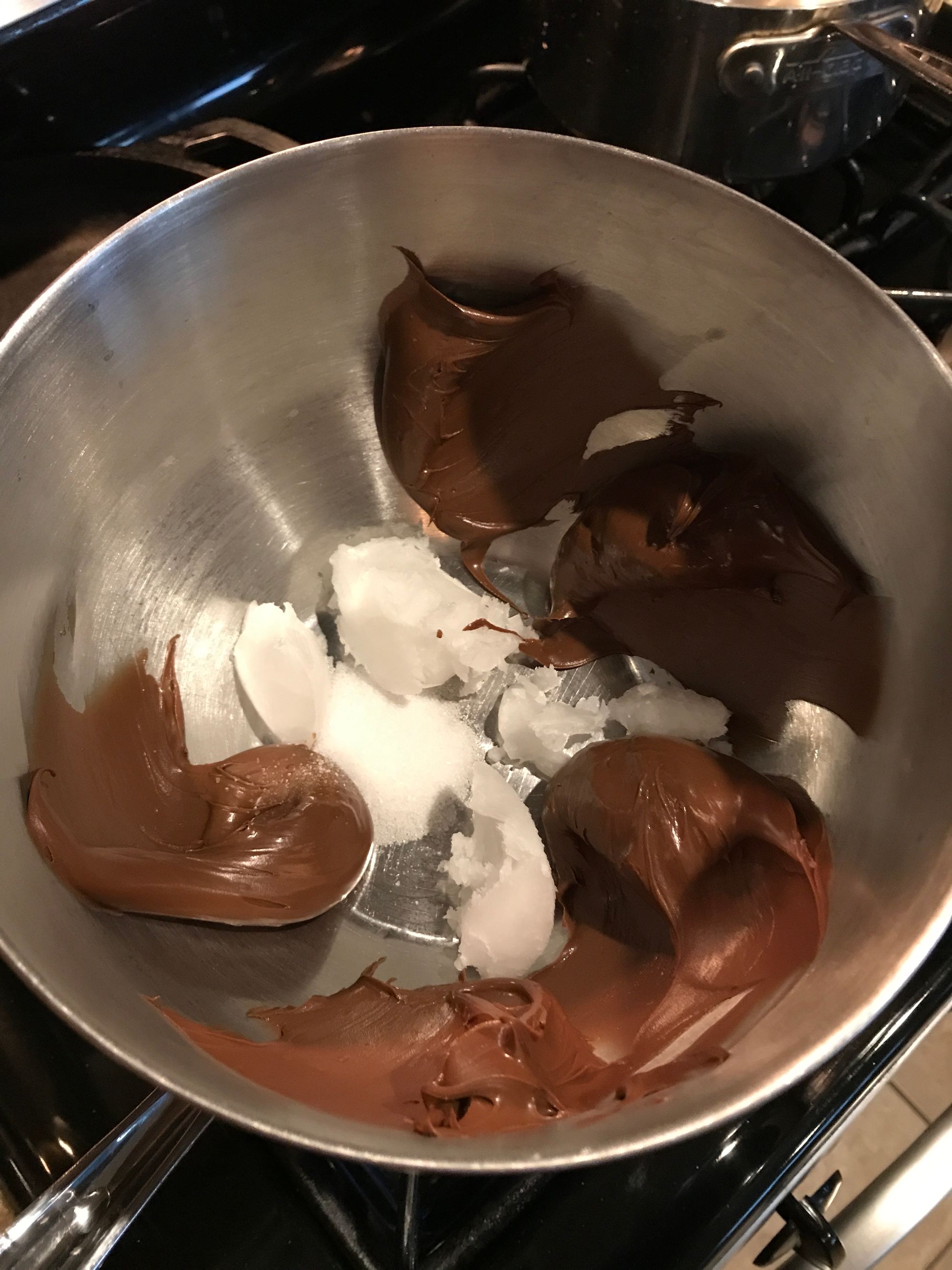 This ice cream uses a crème fraîche with 10 g fine sea salt added at the end. A Nutella ripple.