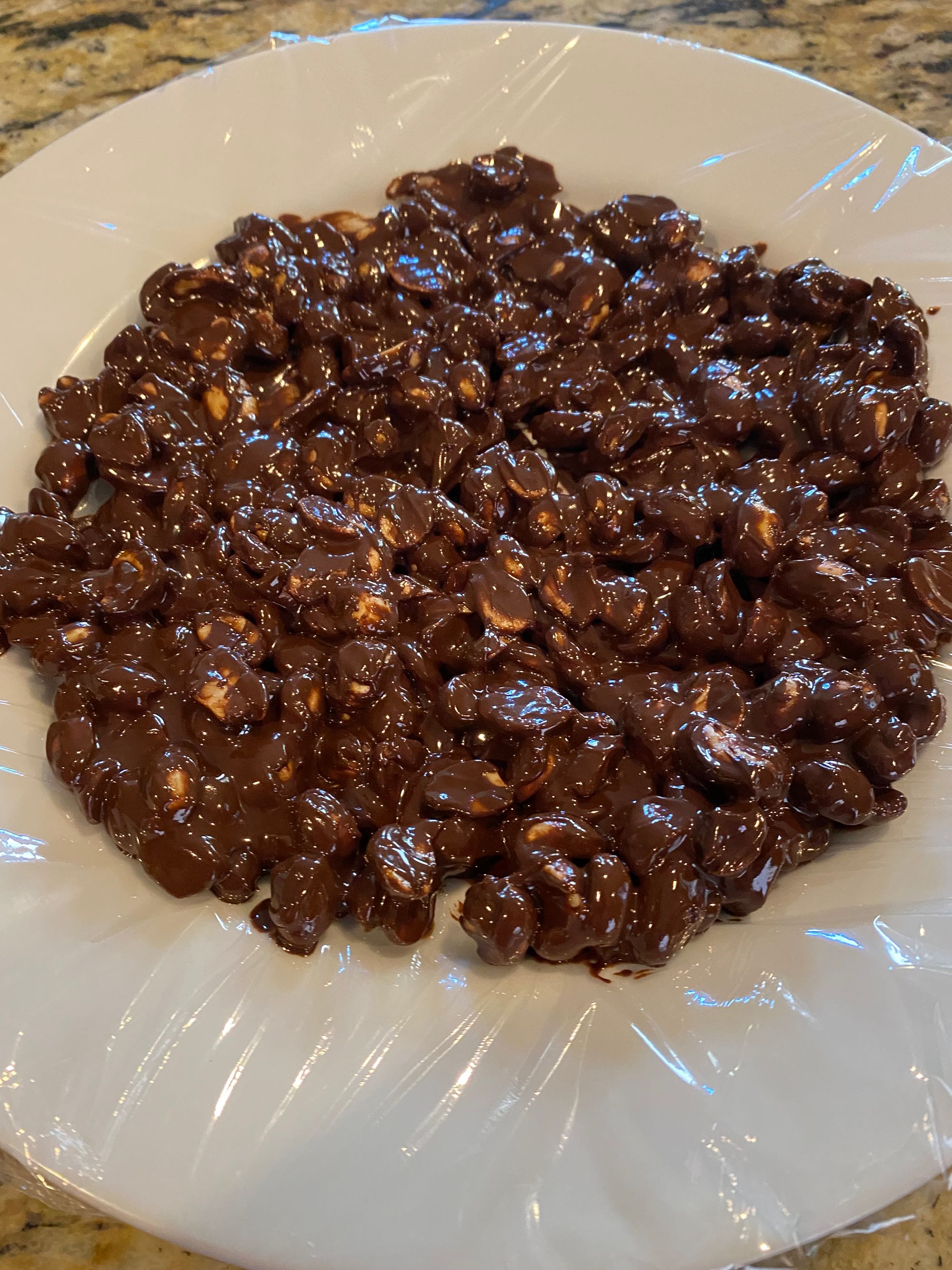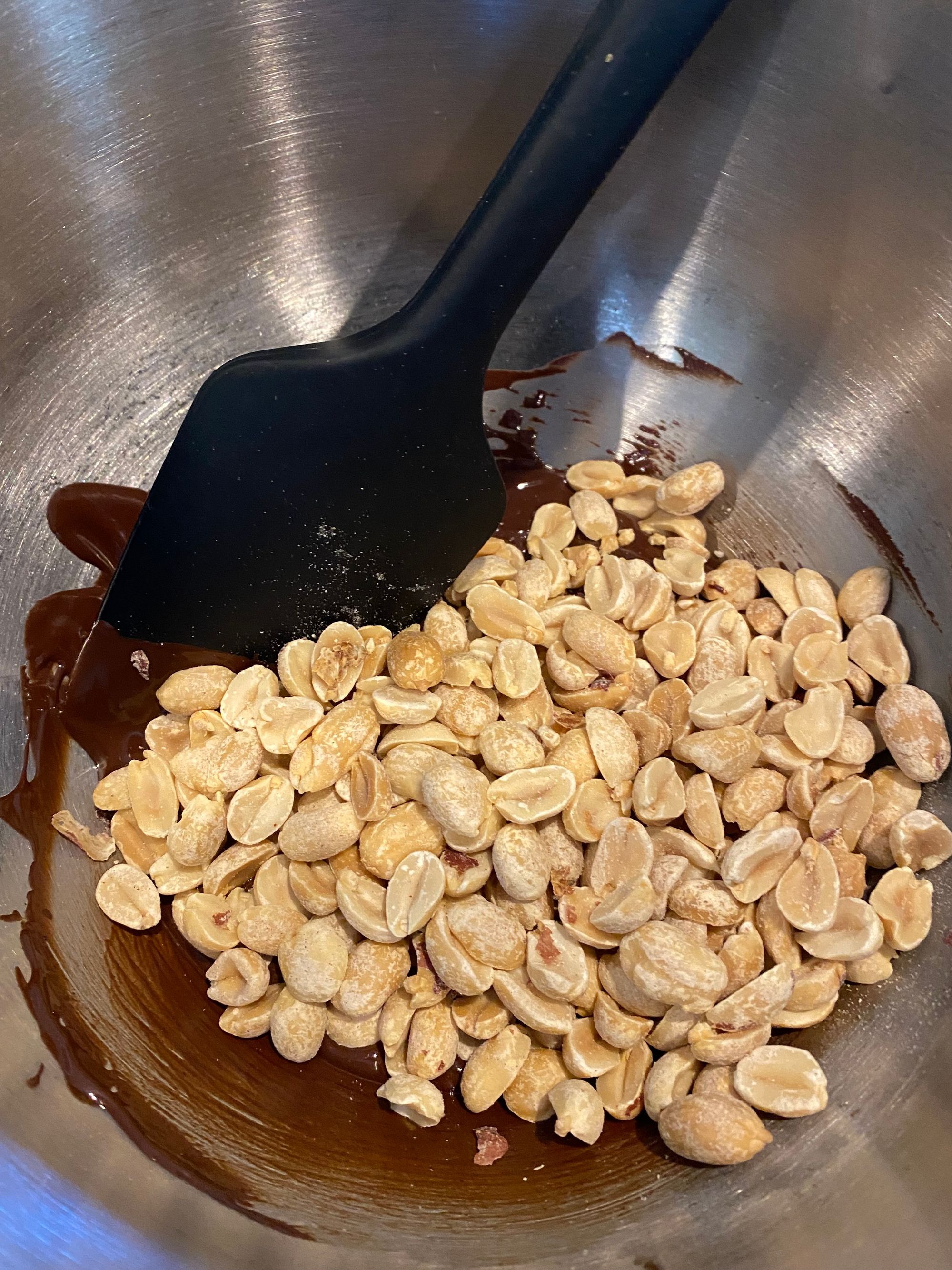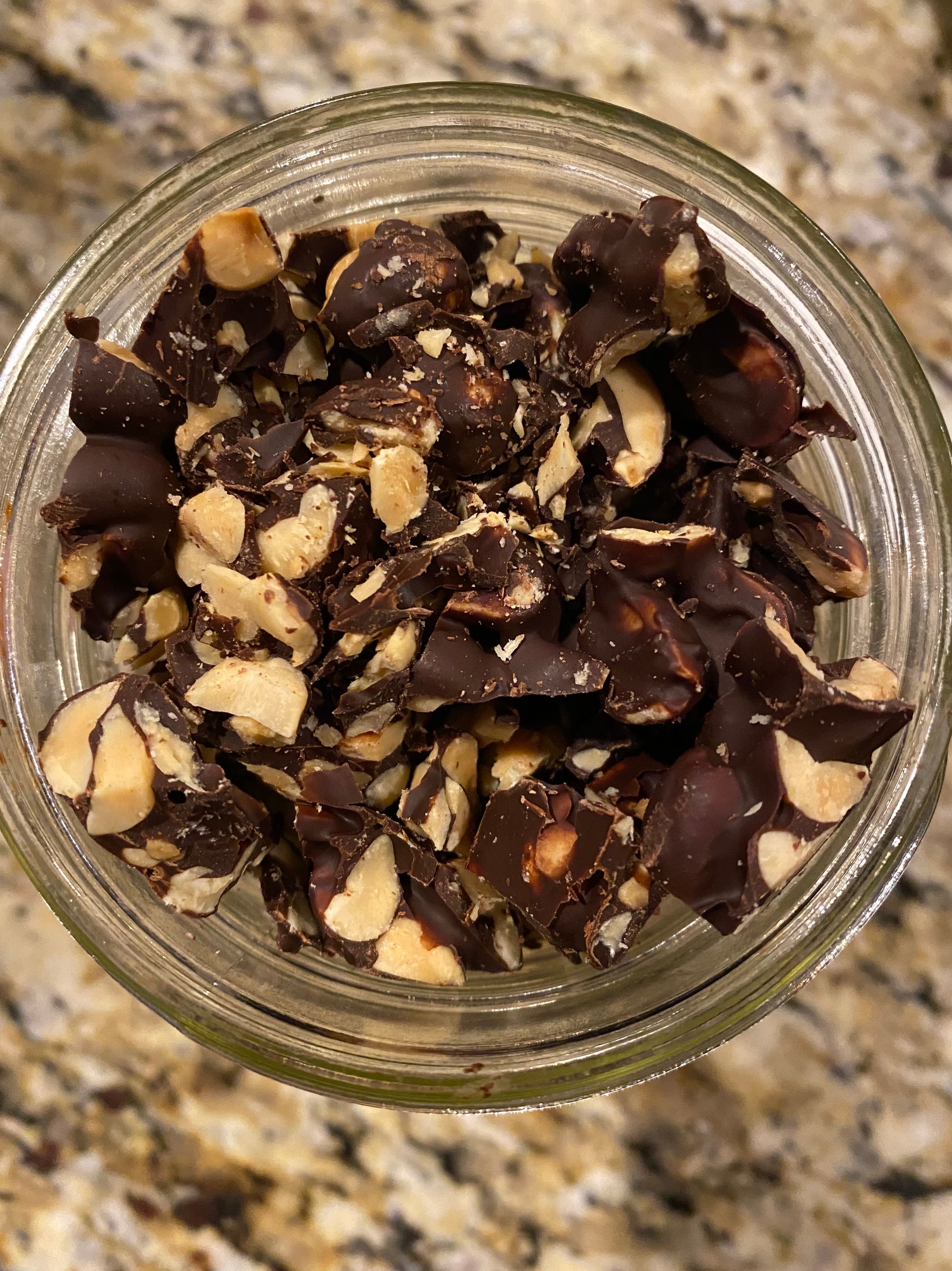 The final component of Tin Roof is the chocolate covered peanuts. Of course, you can buy these in just about any grocery store but I decided to make them myself. While they won't win any awards for prettiness, they taste very similar to store-brought and were quick to prepare. Simply melt some chocolate, mix some peanuts in, cool, and chop.