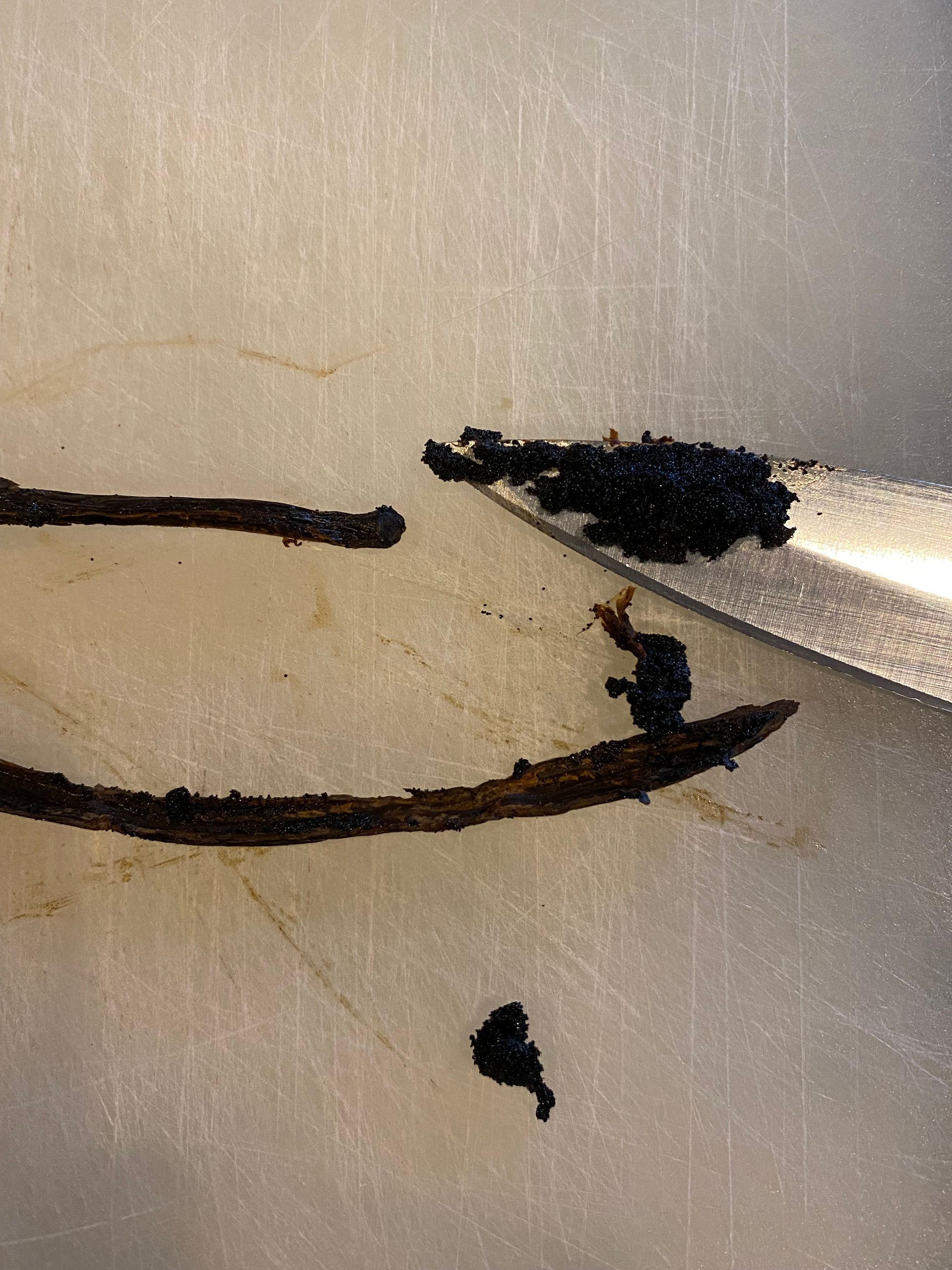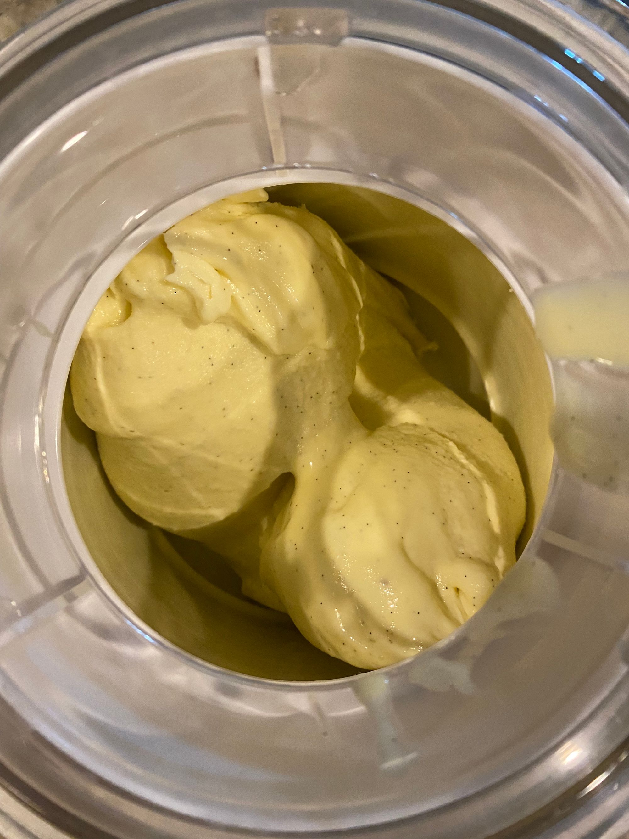 Instead of following the recipe in The Perfect Scoop, I used my vanilla custard recipe. This is one of my favorite standalone flavors, so there's no reason to mess with perfection. I boiled some sugars and dairy, infused the vanilla, then added the eggs. Vanilla pods are expensive but well worth the expense in this recipe.